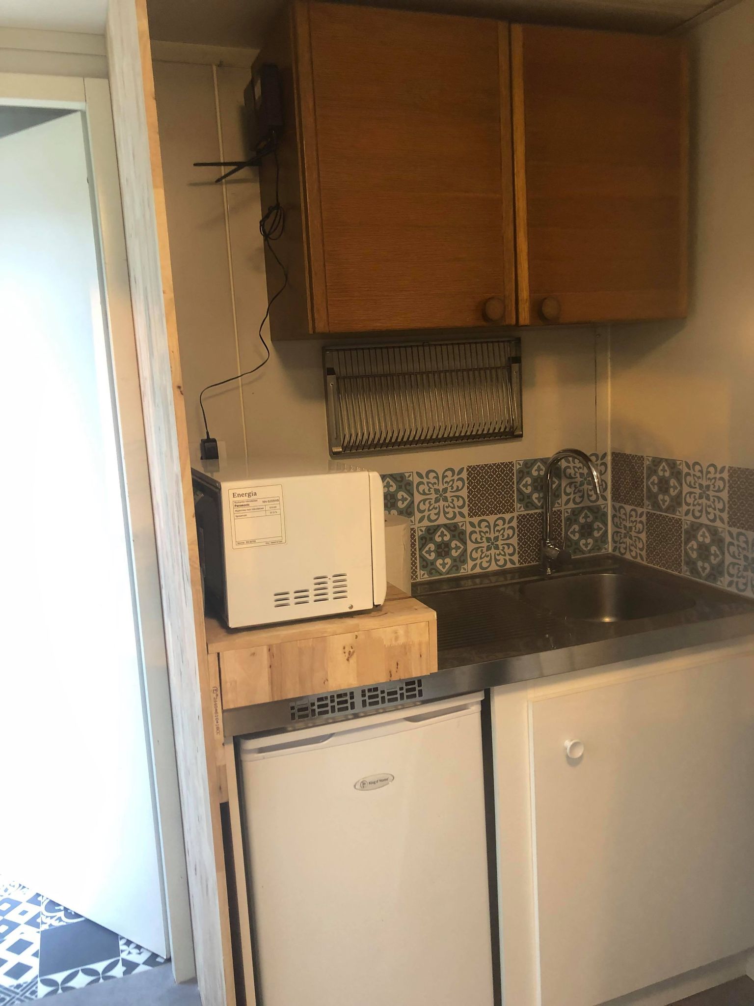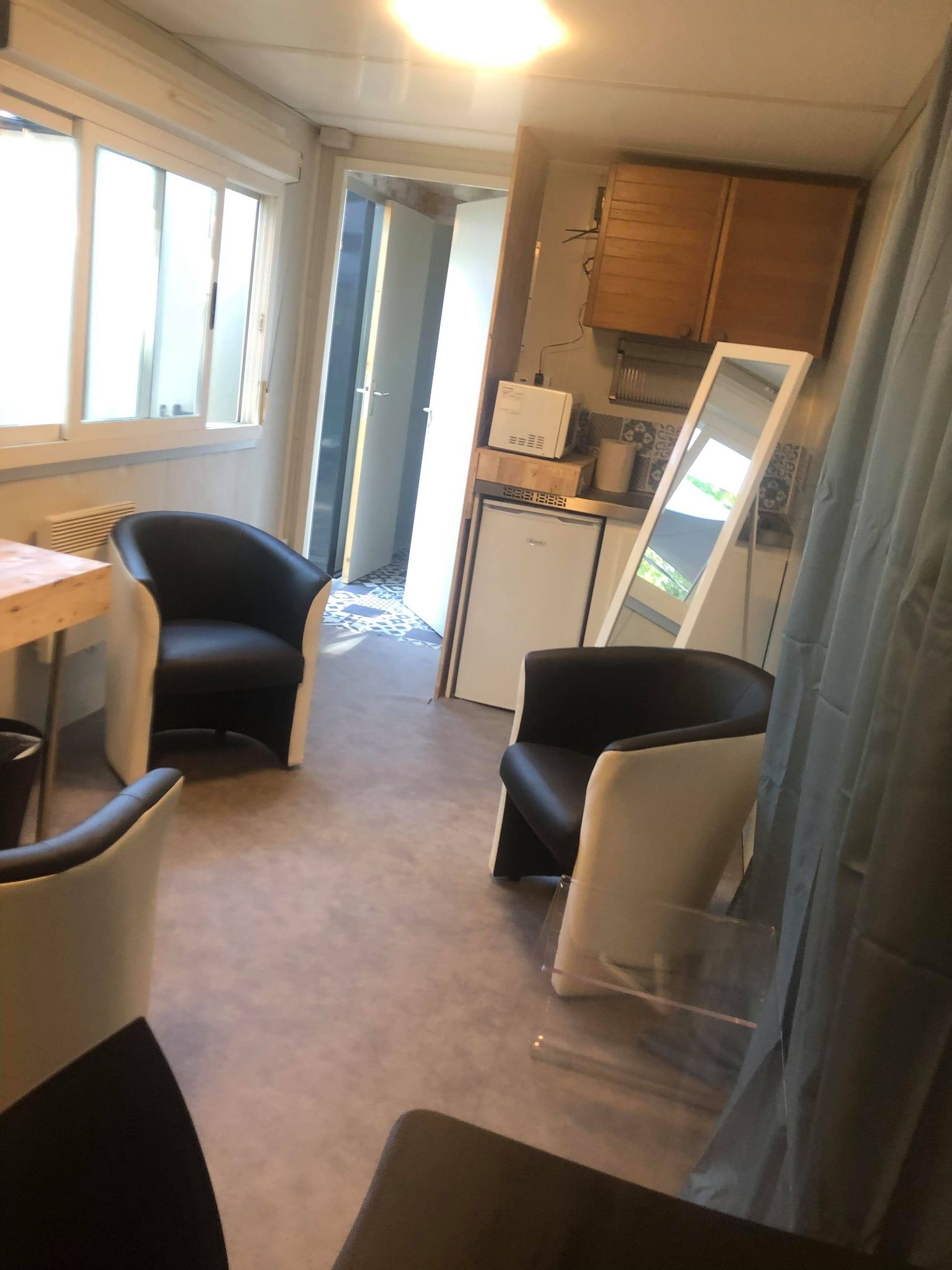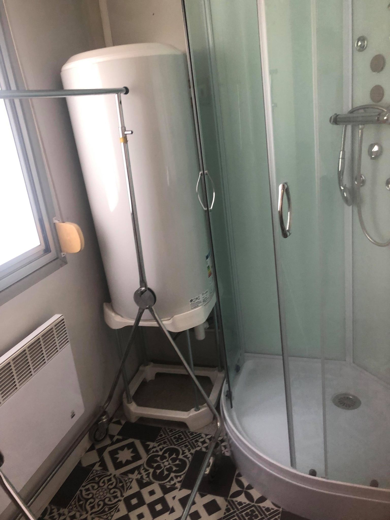 Sécurisé et équipé chauffage d’appoint, sanitaire WC, douche, fenêtres et volets roulants.