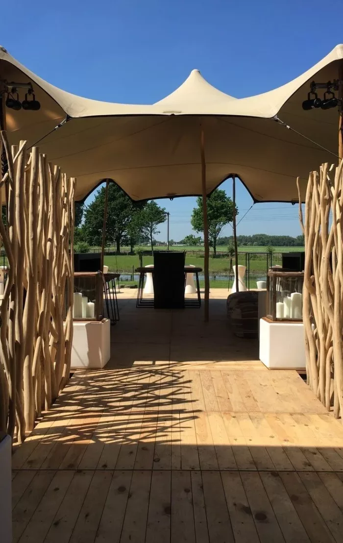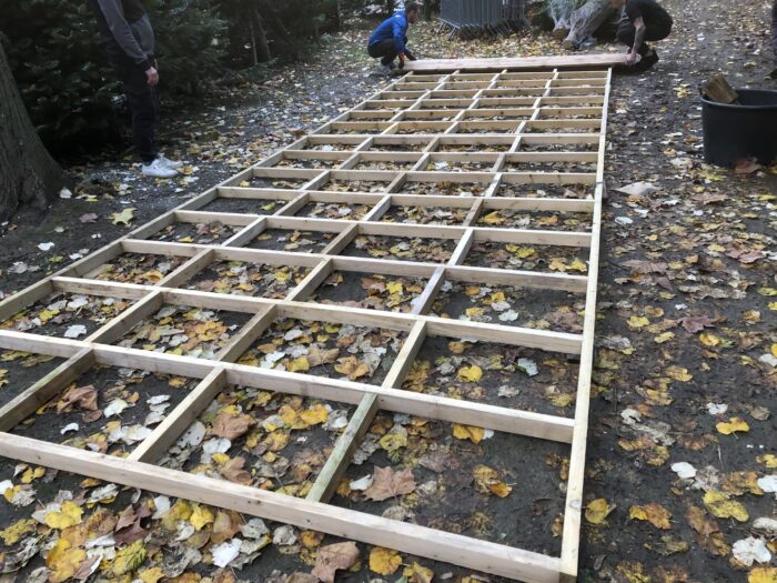 Plancher en bois – lames de terrasse posé et fixé sur cadre en vois.
